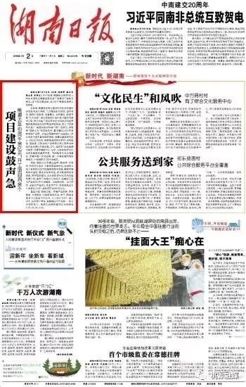 ▲1月2日,一篇题为《项目建设鼓声急》的报道在《湖南日报》头版头条刊登,打响新年宣传第一枪。