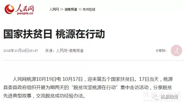 ——脱贫攻坚宣传特色凸显。全县新闻宣传战线围绕我县坚决打赢脱贫攻坚战所推出的强力举措、所取得的阶段成就,精心策划选题,通过开设专栏、推出专题、组织专版等多种形式,策划了一系列有声势、有亮点的宣传战役。人民网、湖南日报、红网、常德市电视台等15家媒体走进我县,就脱贫攻坚工作刊发了《国家扶贫日 桃源在行动》《政策落实、责任落实、工作落实,桃源精准发力推进脱贫攻坚》《茶园深处写新篇》等一大批高质量稿件,宣传推介了我县深入推进产业扶贫、教育扶贫、社会扶贫等方面的做法成效。