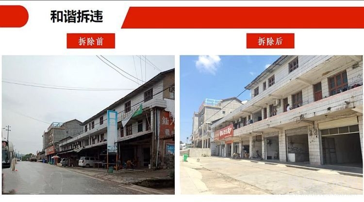 该镇针对集镇“十乱”沉疴,强力推进拆违治乱行动,共拆除202处违章棚点、300多个广告牌匾,整体强拆违章建筑5栋,整治出店违规经营176家,全面铲除了街道小广告、牛皮鲜等。同时,该镇投入700多万元,对集镇段河道进行整治;投入300多万元,新建了垃圾中转站,达到了街道整洁度明显提升、居民参与度明显提升、社会满意度明显提升的三大效果。