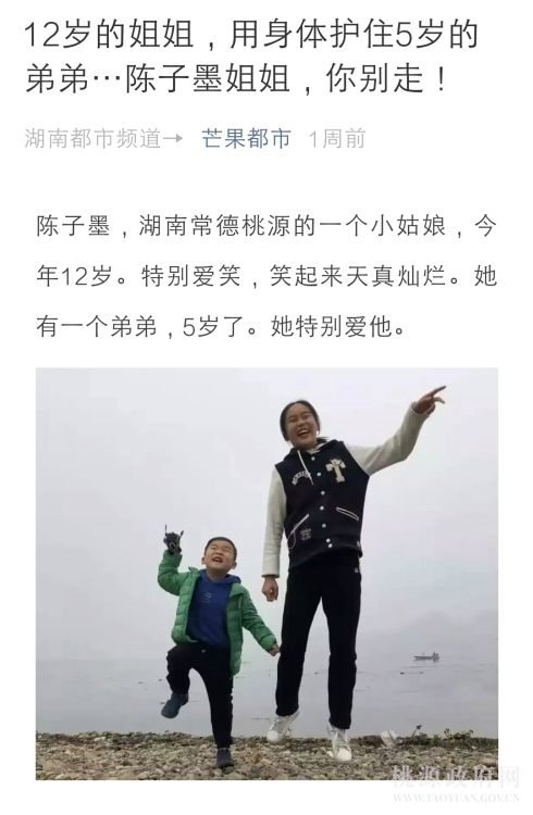 近日,桃源12岁的姐姐陈子墨在火灾中将5岁的弟弟陈墨子护在怀中,用自己身体为弟弟筑上一道防火墙的的感人事迹相继被新华社、人民日报、央视、中新社、湖南卫视以及市县各大媒体报道。危难中她的大爱和勇敢感动了无数人,寒夜里爱心涌动桃城。一个人,感动一座城的陈子墨最终离开了我们,一位深受感动的爱心人士有感而发,为小子墨创作了这首歌曲。愿小天使一路走好,天堂里没有苦痛。
