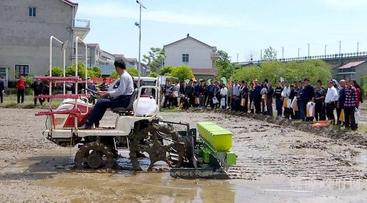 而在陬市镇观摩现场,无人机播种,水稻种、肥、药一体机械精量播种等高科技让大家目不暇接。其中,正在田里来回穿梭的一台旋耕平田深施肥机+石灰机械撒施机,10来分钟,就完成了一亩多田的化肥深施及增施生石灰工作,深深地吸引了种粮大户彭晋京。