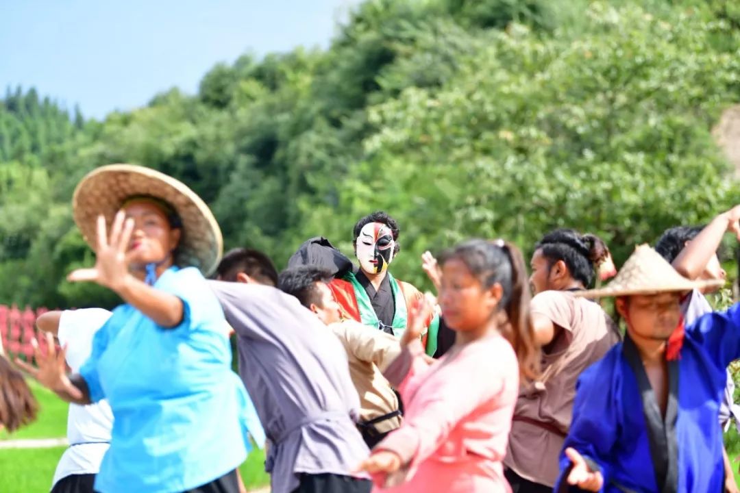 内容:秦谷村民表演热闹欢快的舞蹈。
