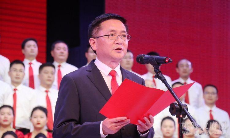 4月28日,桃源县举行庆祝中华人民共和国成立七十周年暨2019年“五·一”国际劳动节“歌颂祖国、唱响桃源”歌咏晚会。来自全县各条战线的劳动者们以昂扬的歌声、饱满的热情迎接节日到来。县委书记周代惠出席活动并致辞。