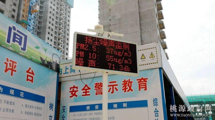 在位于县城区的某楼盘施工现场,一块扬尘噪声监测数据显示屏十分显眼,上面关于PM2.5、PM10以及噪声的实时监测数据一目了然。据该楼盘工程部负责人介绍,一旦工地的扬尘达到规定的上限值,监测仪器就会自动报警,而此时,工人们必须将除尘雾炮机、塔吊喷淋系统等降尘设备全部开启,通过水雾将空气中的灰尘降至地面,然后在地面进行冲洗,确保将施工产生的大气污染范围降至最小、时间降至最短、程度降至最低。
