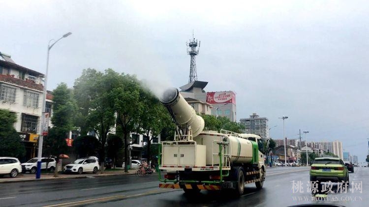 除了工地,除尘雾炮机还用在了道路扬尘的治理中。每天,这种大型除尘雾炮机和洒水车相继出现在桃源县城区的主干道上,高空降尘、地面冲洗一气呵成,及时遏制道路扬尘四处飘散。除了县城区,桃源县还以陬市等重点建制镇为核心区域,对全县47家“五场一地”扬尘源头企业实施专项整治,达到了扬尘整治“以点带面”的辐射效果。