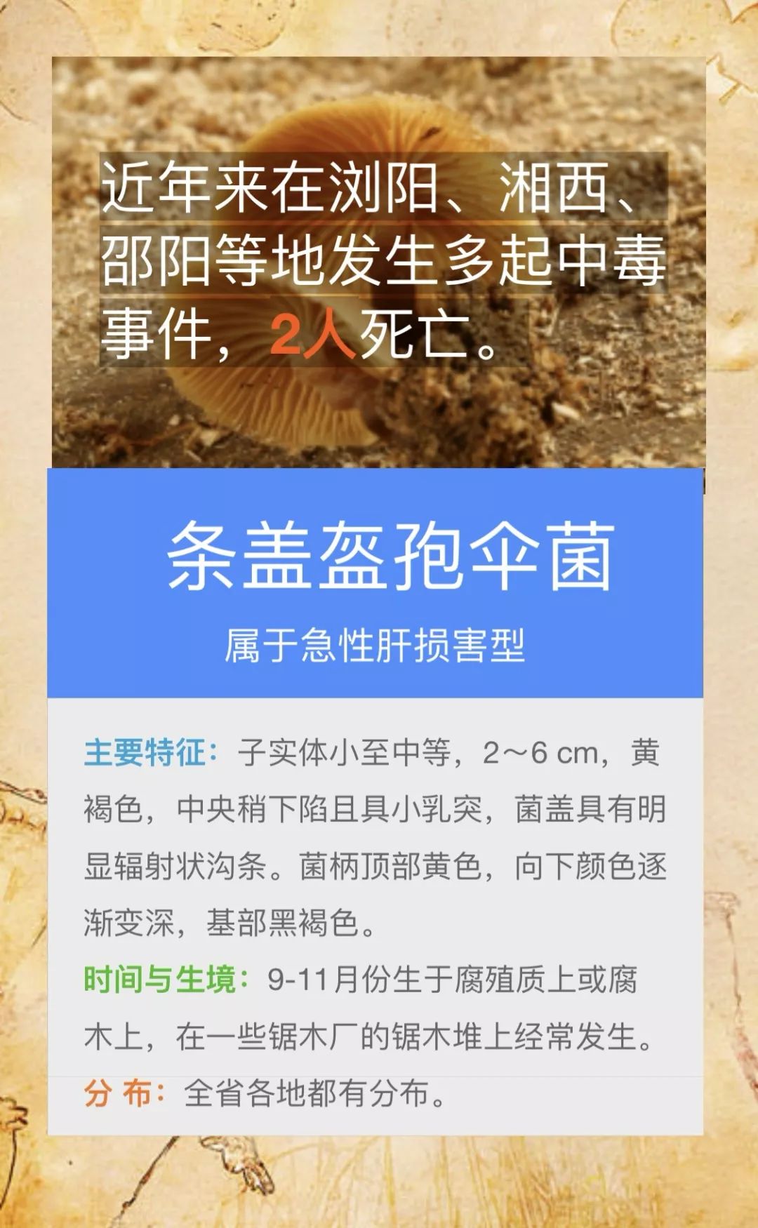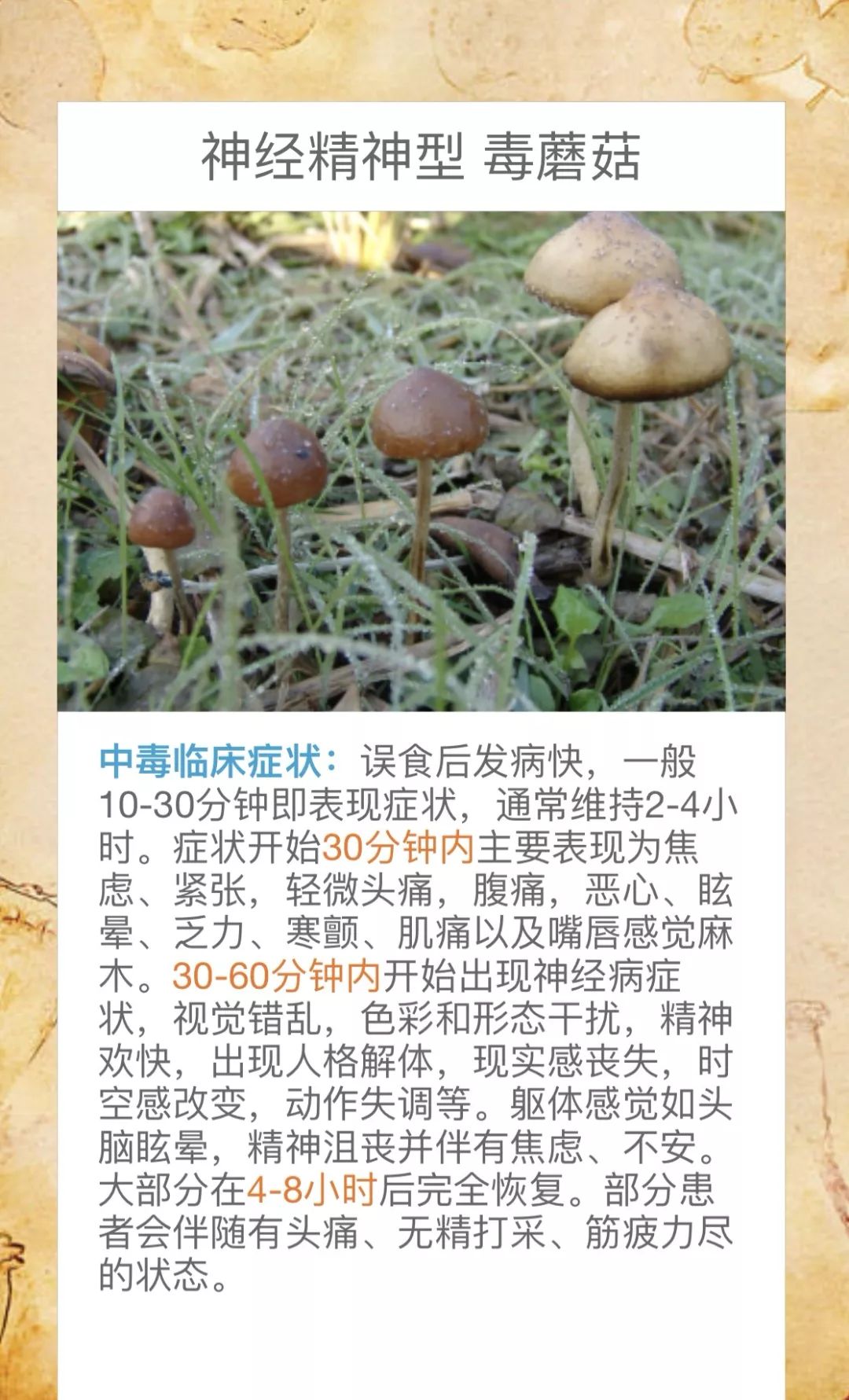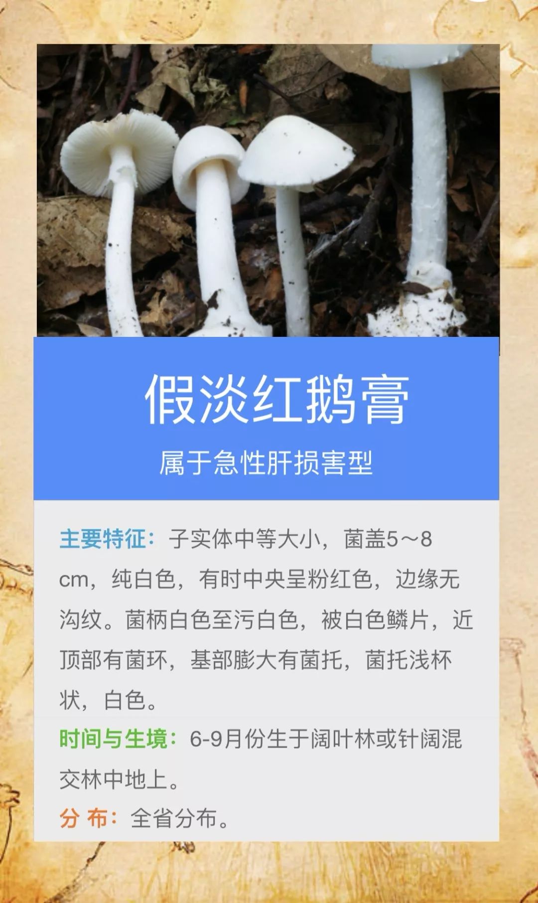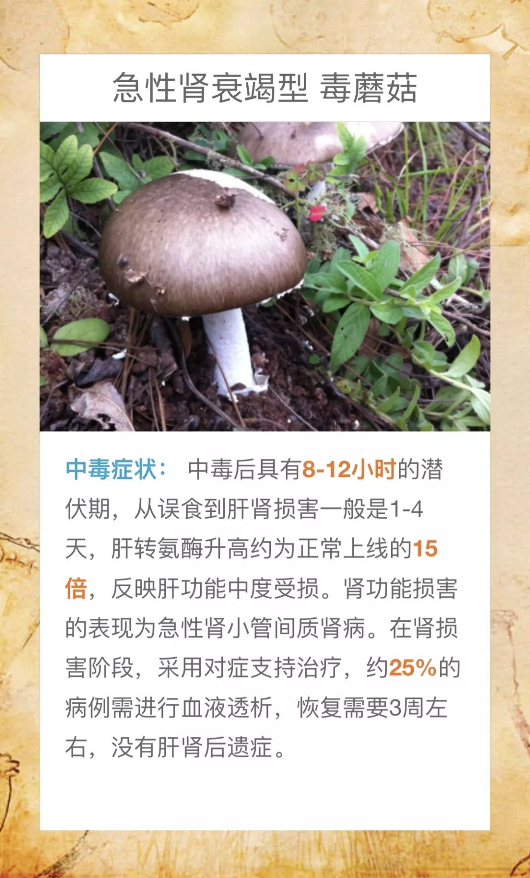 @桃源人,湖南常见毒蘑菇有哪些?怎么识别? 来源: 发布时间:2019-07-16 09:29 【字体:小 大】 我省每年因误采食毒蘑菇而导致的中毒死亡事件常有发生,给患者及其家属带来巨大的痛苦和沉重的经济负担。毒蘑菇中毒已经成为食物中毒事件中导致死亡的最主要因素!国家食品安全风险监测湖南中心的专家提醒市民:千万不要随意采摘、食用野生蘑菇!此外,民间流传的识别毒蘑菇的方法,如银针验毒、大蒜去毒等方法并不可靠,切勿相信。一旦食用野生蘑菇后出现中毒症状,应立即催吐,尽快就医。那么,我省常见的毒蘑菇有哪些呢?一起来涨涨姿势吧! 扫一扫在手机打开当前页 分享到: 【打印正文】