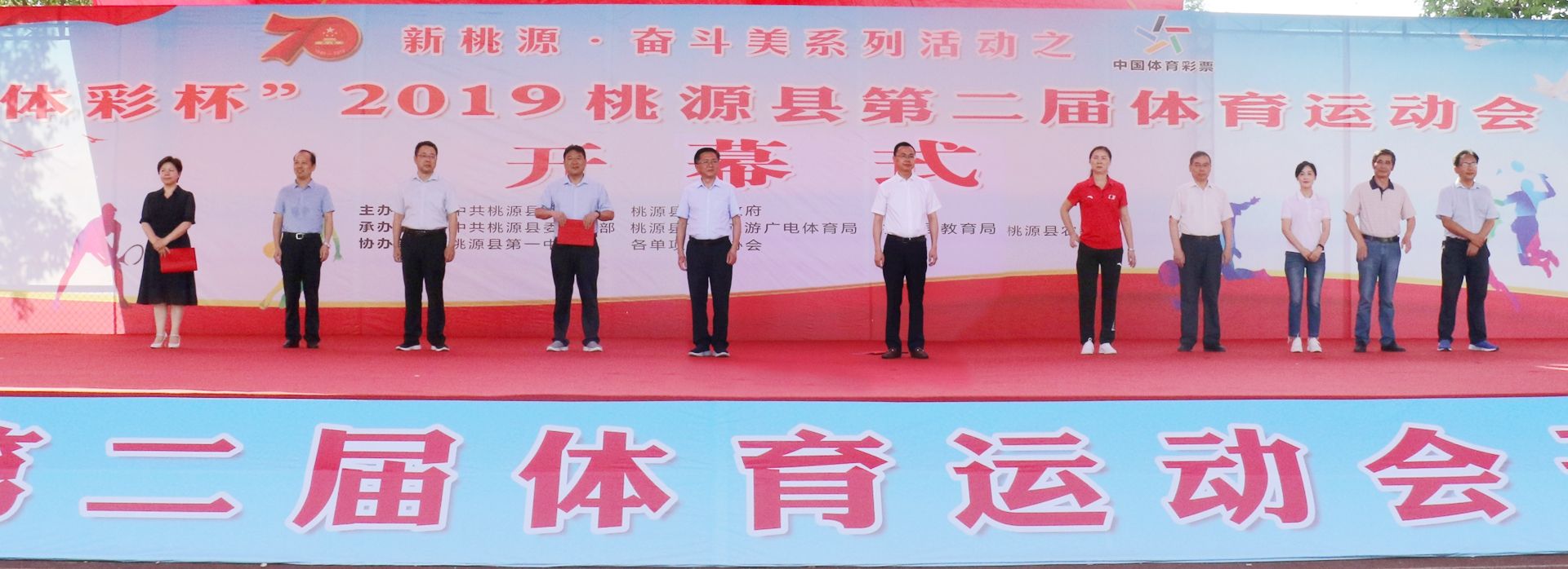 7月30日上午,桃源县第二届体育运动会在县文体中心开幕。县委书记周代惠、县长庞波出席开幕式。