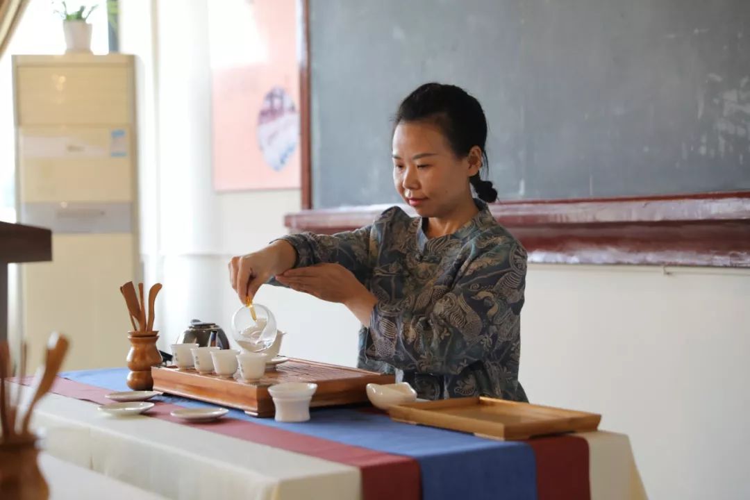 本着传播茶文化的初心,君和茶学苑负责人、茶艺老师詹霞,生动的为孩子们讲解了茶文化知识,进行了茶艺表演,并学习了茶礼仪。