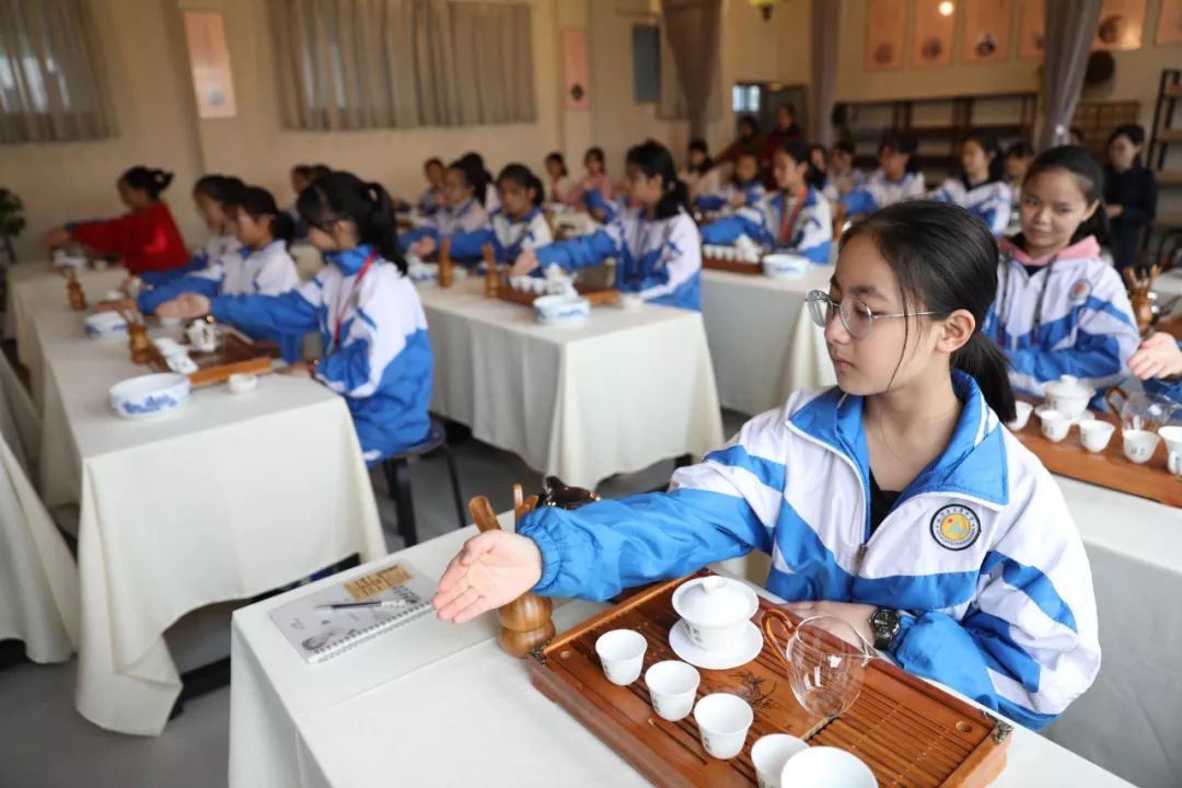 茶文化进校园有助于让孩子们了解传统文化、自然风物、悠悠人文,树立起“知茶性、明茶理、爱文化”的意识。文昌中学以茶文化为切入点,让茶艺教育走入校园,与校园文化建设紧密结合,提升茶文化的精神文化品位,把茶艺与德育有机结合起来,弘扬中华茶文化,争做新时代奋进好少年。