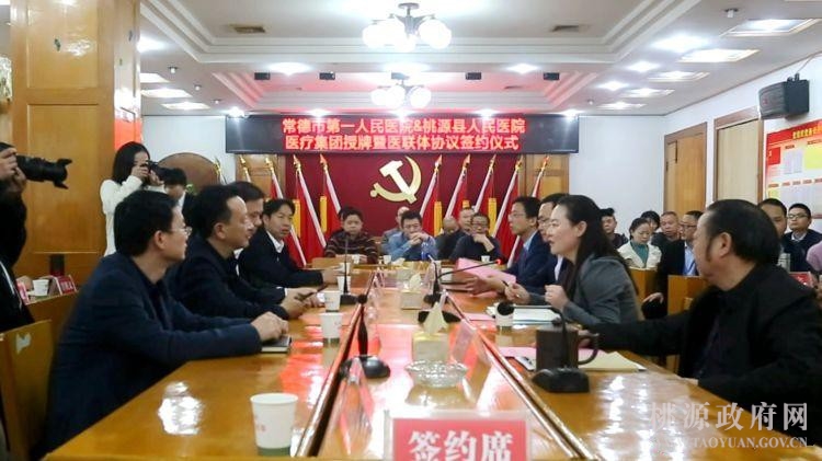 为积极响应健康中国2030国家战略,进一步深化医药卫生体制改革,探索上级医院支援下级医院提升服务能力新路子、新途径。11月2日下午,常德市第一人民医院和桃源县人民医院举行医疗集团授牌暨医联体协议签约仪式,这标志着我县医卫体制改革跃上一个新台阶,医疗服务水平得到整体提高。县长庞波出席签约仪式。