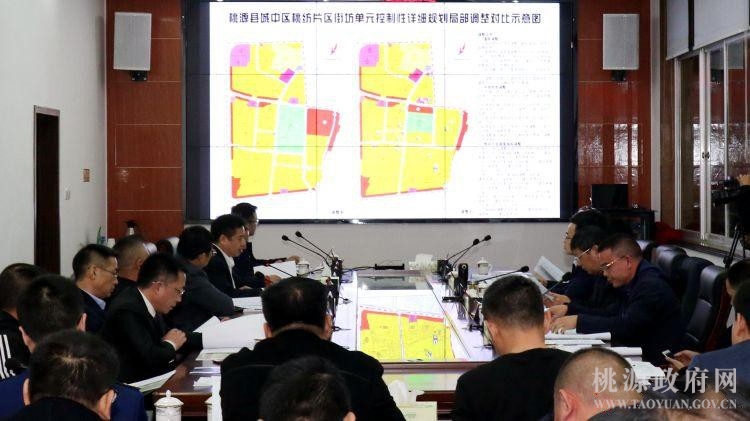 会议讨论审查了《桃源县城中区桃纺片区街坊单元控制性详细规划》修改方案、桃纺片区棚户区改造项目一期工程K1地块总平面图、1953号国土储备地块控制规划图则方案、渔父北路街心绿地工程规划设计方案、漳江派出所总平面图、延溪桥改造方案、1958号国土储备地块控制规划图则方案、六合幸福里小区和六合清华园小区店招设计方案和漆河镇原重阳乡政府处置地块控制规划图则方案。