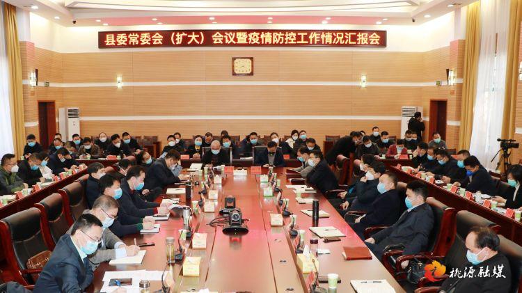 1月29日下午,桃源县委书记周代惠主持召开县委常委会(扩大)会议暨疫情防控工作情况汇报会,传达学习习近平总书记近期关于新型冠状病毒感染的肺炎疫情作出的重要指示和《中共中央关于加强党的领导、为打赢疫情防控阻击战提供坚强政治保证的通知》精神,贯彻省委书记杜家毫在省委常委会上的讲话精神,传达学习了省委组织部视频会议精神以及市委常委扩大会议精神,听取了我县当前疫情防控工作情况,并就后续的疫情防控工作进行了部署。县长庞波参加会议并讲话。