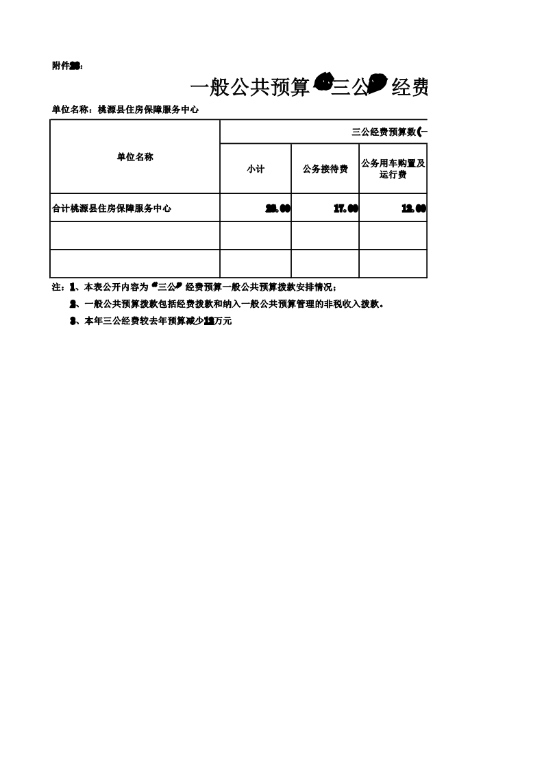 桃源县住房保障服务中心2020年“三公”经费预算表