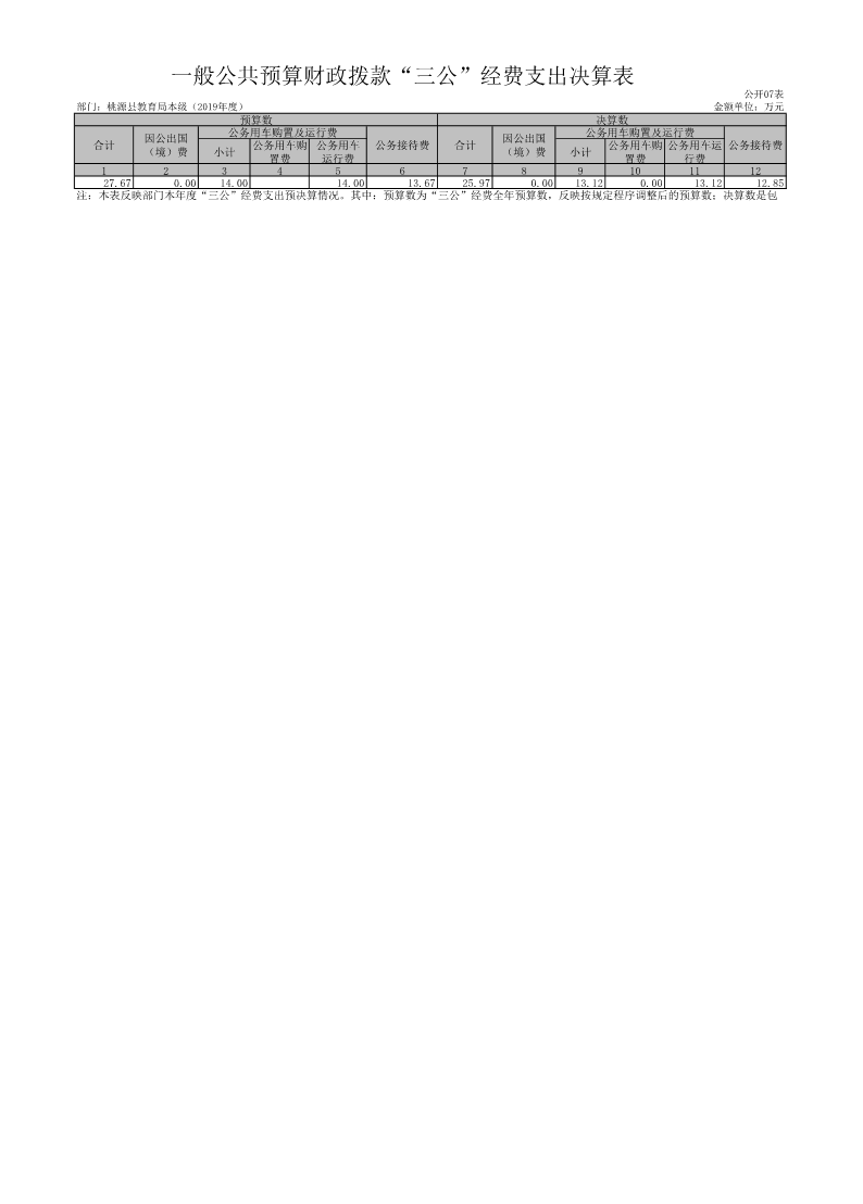 桃源县教育局本级2019年度“三公经费”决算公开