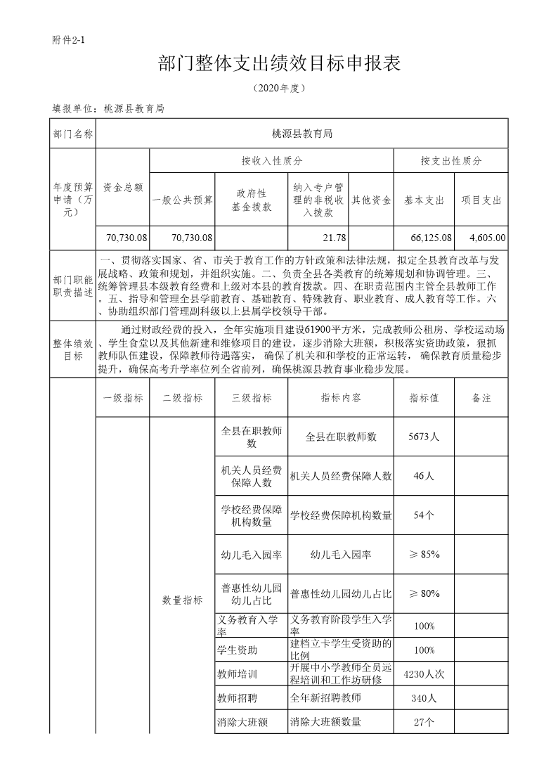 桃源县教育局2020年整体支出绩效目标申报