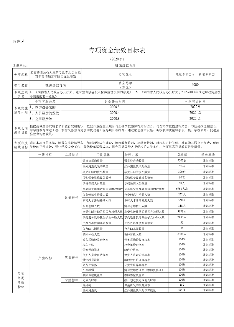 桃源县教育局2020年专项资金绩效目标申报1