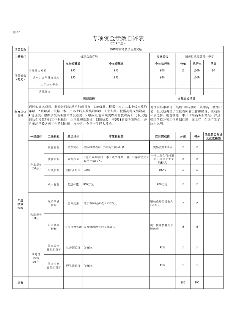 桃源县教育局2019年专项资金绩效自评表1
