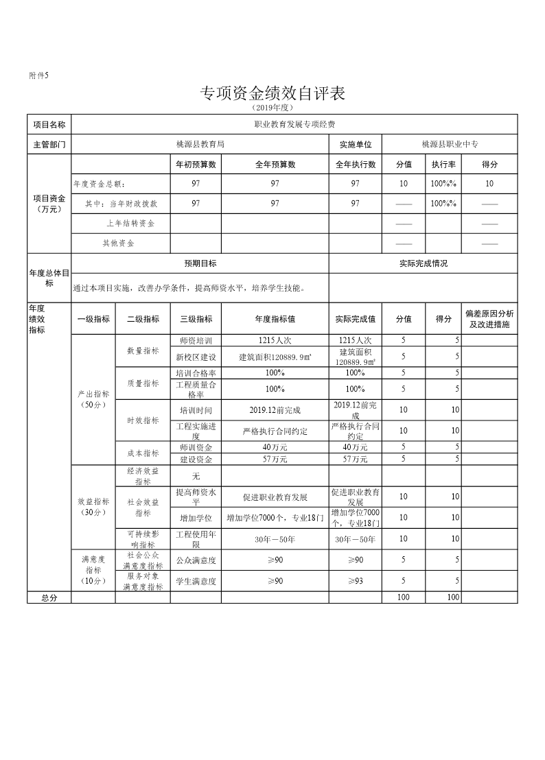 桃源县教育局2019年专项资金绩效自评表3