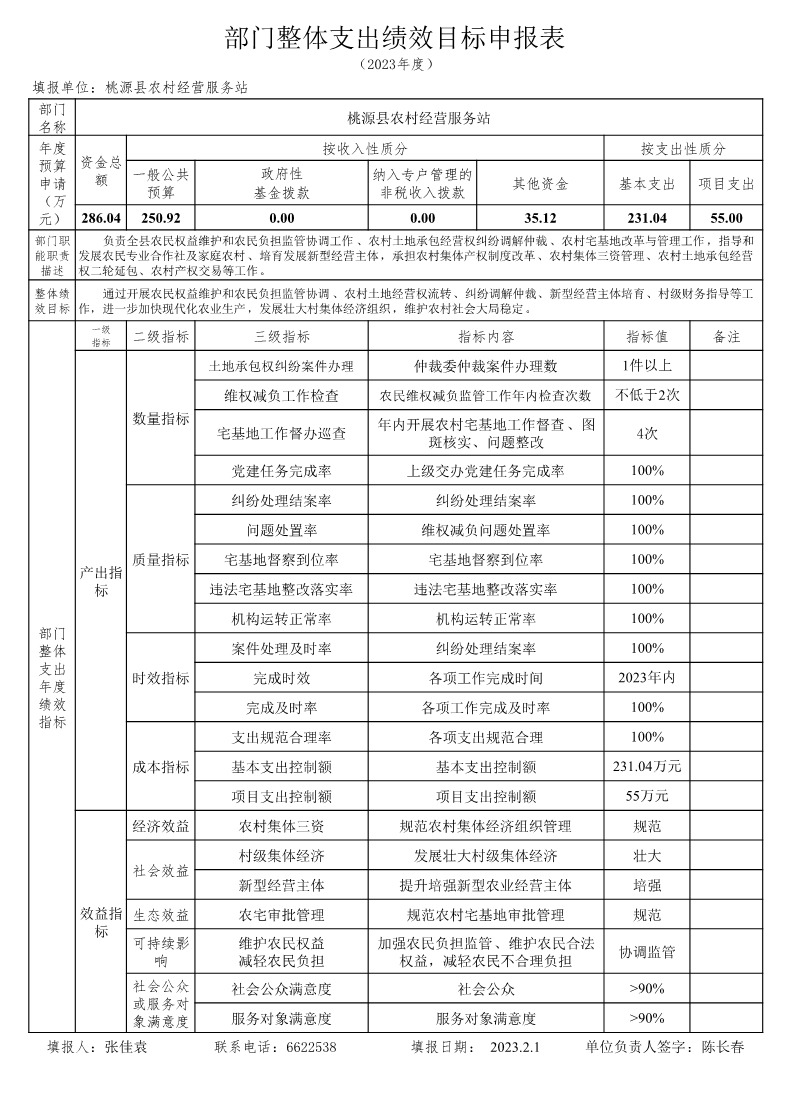 桃源县农村经营服务站2023年度部门整体支出绩效目标申报表