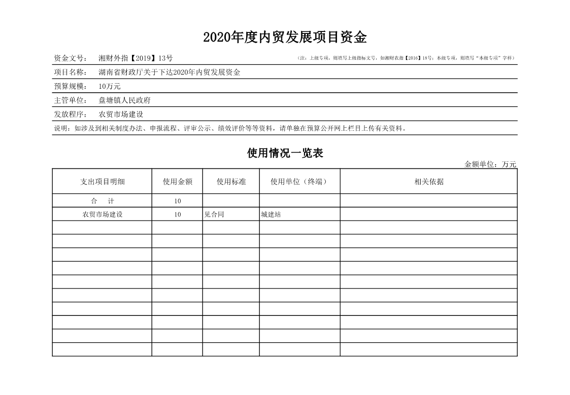 桃源县盘塘镇2020年专项资金公开