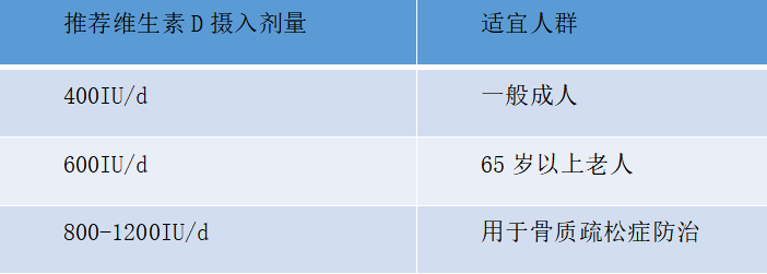 表1 不同年龄人群维生素D推荐剂量