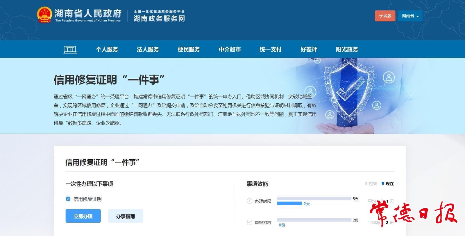 9月9日起,常德市正式上线信用修复证明“一件事”线上办理服务,在信用修复服务数字化领域,率先试水行政处罚信用修复证明“一网通办”。