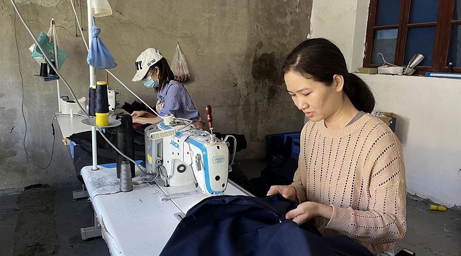 “老婆在制衣车间里做事,我这个样子也帮不上什么忙,我争取了一些小配件的活儿,尽量给老婆减轻工作负担,真的很感谢社区给了我们家一个工作的机会。”丈夫燕良涛说,据他了解,全镇除了妻子就业的制衣车间,另外还有3间乡村振兴车间、4家制衣加工厂、4处快递网和10余家生活日用品超市,及时解决了本镇400余名留守妇女的就业问题,满足了她们“家门口”安心工作的愿望。
