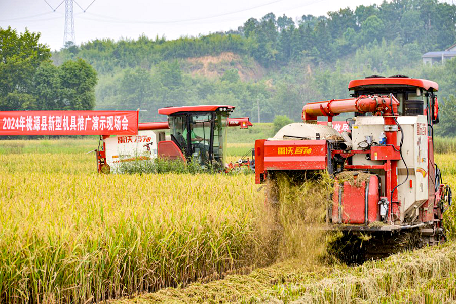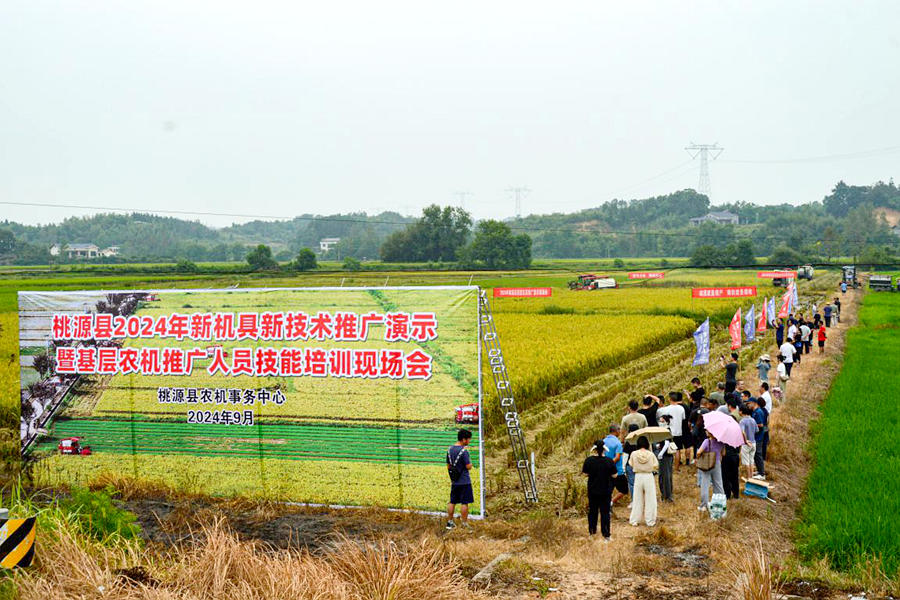 先进实用的农机装备是实现农业生产现代化“最后一公里”的重要保障。9月3日,桃源县农机事务中心在剪市镇举行2024年新机具新技术推广演示暨基层农机推广人员技能培训现场会,桃源县各乡镇的农机大户、种粮大户、农机合作社近100人参加。