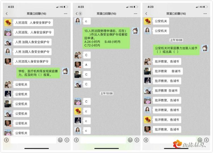 双溪口镇开展《反家暴法》线上知识竞赛 来源: 发布时间:2020-03-06 14:41 【字体:小 大】 为方便妇女群众在疫情防控期间就近反映和解决诉求,及时为妇女群众及广大家庭排忧解难,双溪口镇妇联联合镇司法所开展“建设法治桃源.巾帼在行动”为主题的《反家暴法》线上知识竞赛活动。此次竞赛内容主要围绕家庭暴力的特征、人身保护令、告诫书等法律知识,聚焦疫情返工期间家庭暴力等婚姻家庭矛盾纠纷、医疗纠纷等问题,加强了妇联干部对家庭暴力现象和危害的重视,引导他们为妇女群众提供高质量的家事调解、法律咨询,指导妇女群众更好的维护自身合法权益。 扫一扫在手机打开当前页 分享到: 【打印正文】