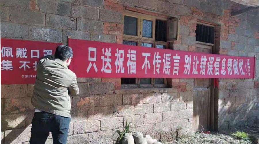 该镇通过悬挂横幅、张贴标语以及出动宣传车等形式全方位宣传疫情防控的新形势与新要求,提高群众的自我防护意识。与此同时,在临近年关之际,针对在外人员返乡人数剧增的情况,该镇实行各村(社区)党员干部包组包户,将防控责任落实到人,呼吁群众采取“网络拜年”等新兴方式庆祝佳节,减少走亲访友,尽量减少人员流动与人员聚集。