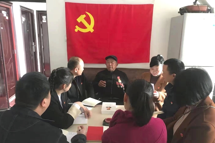 近日,漳江街道西苑社区工作人员来到退伍老兵徐新秋家,开展“传承红色基因听英雄讲故事学党史”主题教育。