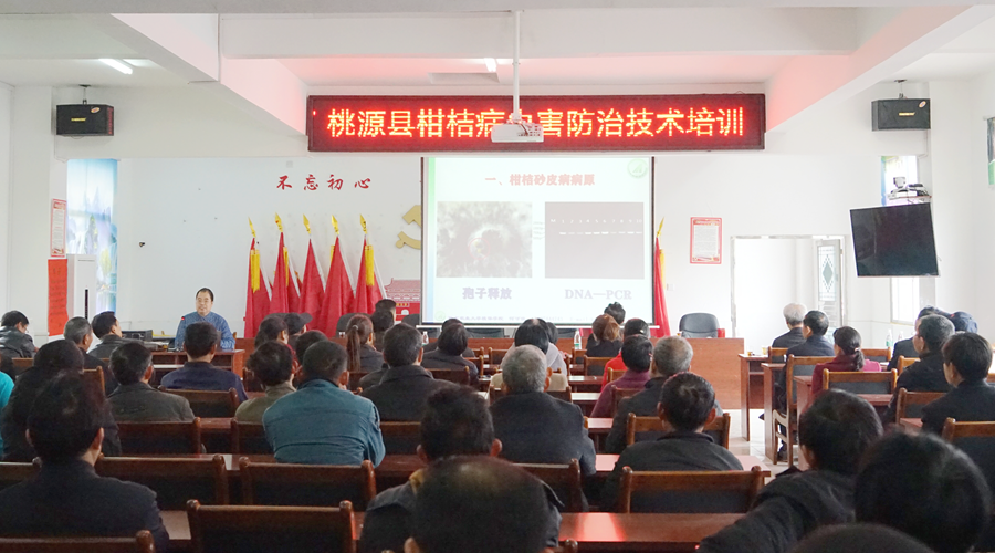 桃源县马鬃岭镇是柑橘大镇。为提高全镇橘农柑橘栽培技术水平,近日,马鬃岭镇柑橘病虫害防治技术培训会在木槎桥村召开。8个村(居)的村组干部、柑橘种植大户近百人参加了培训。