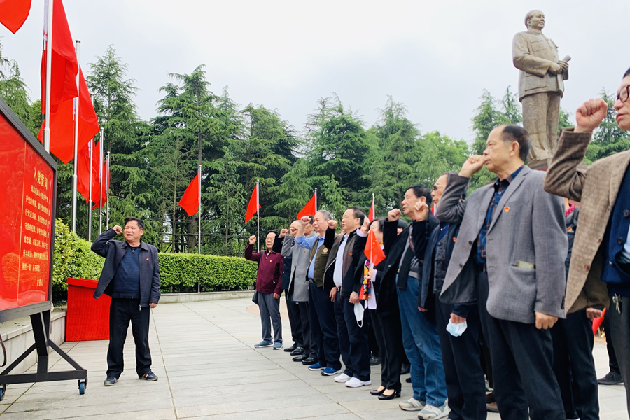 “我志愿加入中国共产党,拥护党的纲领,遵守党的章程,履行党员义务……”在韶山毛主席铜像广场,漳江街道老干支部党员们面向党旗,庄严宣誓,重温入党誓词,庄严的誓词、高昂的士气表达了老同志矢志不渝跟党走的决心和永葆忠诚的坚定信念。
