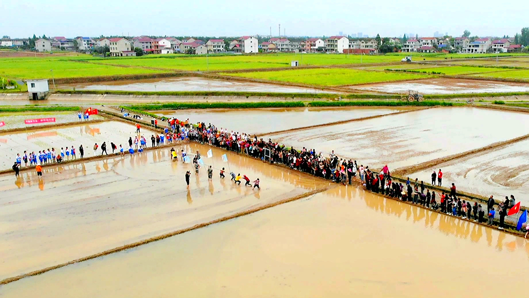 同时,村民代表、企业代表和学校代表还分别组队进行了泥地拔河比拼。