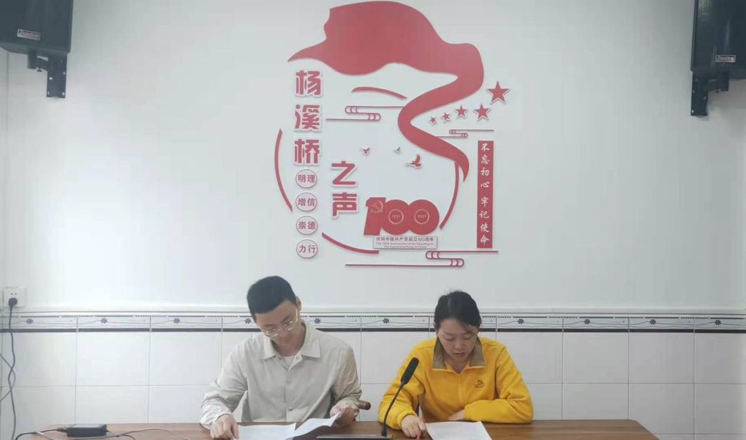 “杨溪之声”广播是杨溪桥镇党委深入推进党史学习教育,积极发挥青年宣讲员的作用,让“百年的党”和“青春的我”有机融合的一次生动实践。在去年对全镇130余个广播进行系统升级、村村响覆盖至所有的村民小组的基础上,镇团委选了20名年轻干部担任播音员,两两一组,每周一下午3点半准时开播。广播以群众喜闻乐见的形式,以提高群众的党史学习教育实效为目的,内容紧扣县、镇两级中心工作,以《党史故事我来说》栏目为主题,还包括一周资讯、抢抓农时助生产、送君一“习”话、榜样在身边、学习好做法等其他五个模块。