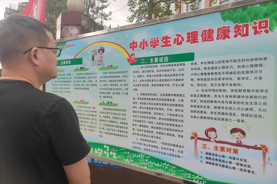 在文星小学校门口展出了十多块精心制作的展板,包含心理学发展、心灵小故事、心理小测试、“走进青春期”、“0-6岁和6-12岁孩子表现”和家长家庭教育基本行为规范、关爱留守儿童等十多个方面的内容。科普展板一经展出,就迅速吸引了家长们的注意,引来家长驻足学习。遇到有疑惑的问题,家长们或是与身边的其他家长展开交流,或是向在场心理学会的老师寻求解答和建议,现场学意浓浓。