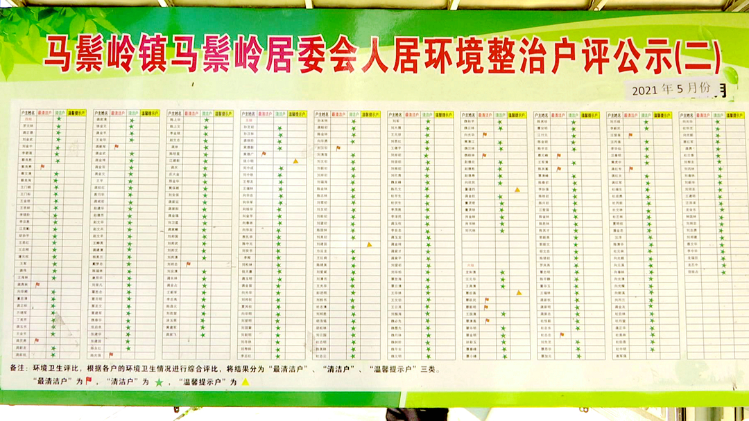 马鬃岭镇马鬃岭居委会党总支书记王超介绍,对搞的好的清洁户,每个月都发一些桶子、帽子、雨伞这些小礼品,然后对不清洁户我们也通过微信群、广播、显眼位置张贴的方式进行公布。现在我们居委会达到了一种环境卫生人人参与,美丽家庭户户受益的氛围。