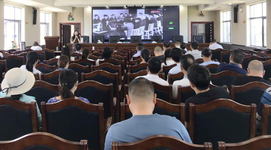 近日,一场别开生面的党史故事分享会在枫树维回乡大会议室召开。该乡党政办干部龙颖利用LED大屏幕播放视频,声情并茂地讲述着刘少奇同志的红色故事《一张不寻常的礼品单》,党员干部仿佛置身其中,全神贯注,深深为历史故事所感动、所震撼。