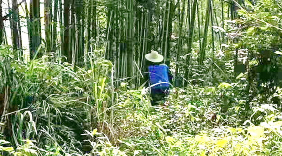 4月初,该镇召开竹蝗防治工作专题会议,下发了防治方案,并与相关村居签订了防治责任状。按照竹蝗防治“治小治了”的原则,镇村两级要求有竹林的农户,各自上山查找越冬蝗虫卵块,插上标志并上报村居,再由村居统一上报镇农业综合服务中心。目前,正值高温季节,是药杀跳蝻(卵块演化而来)阶段的最佳时机,镇农业综合服务中心组建了两只专业防治队,对跳蝻集中地,每天进行集中药杀,极大减轻了防治的工作难度。