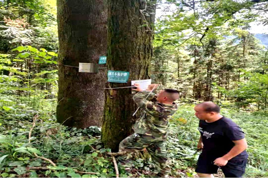 据了解,此次挂牌的树种有南方红豆杉、青钱柳、钩栗、马尾松等,其中一级古树3株,二级古树9株,三级古树30株。目前,古树长势良好,有了这个“身份证”和护林员对古树进行管理养护,为古树撑起“保护伞”。