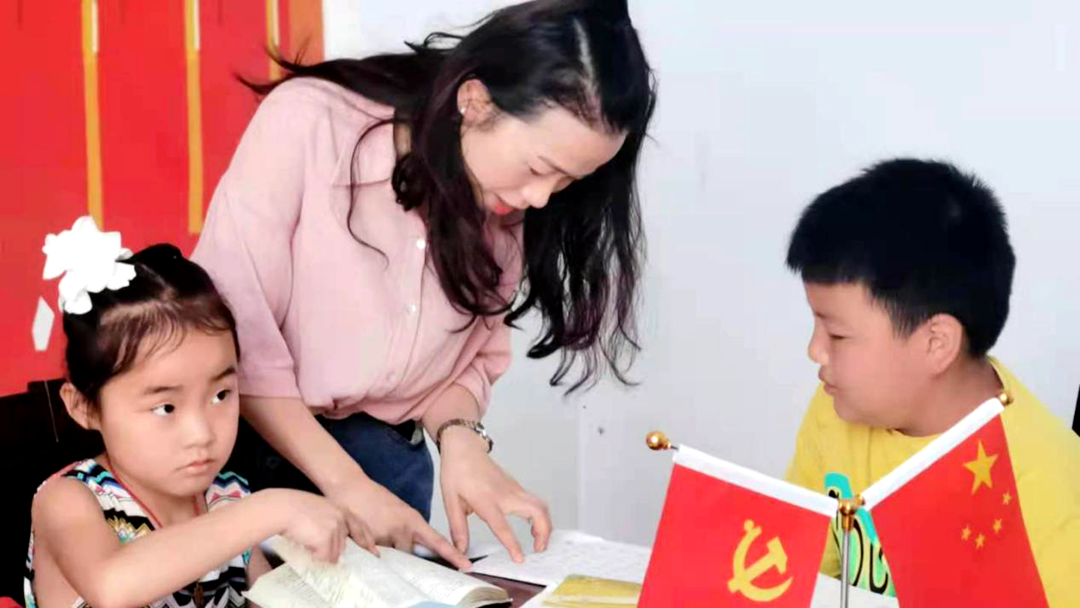 “彭老师,这道题怎么做?”“彭老师,你看我画的这个花花好不好看?”被孩子们包围的“彭老师”是杨溪桥镇蔡家塘村乡村振兴驻村工作队队长彭虹,今年暑假,她有了一个新的身份——蔡家塘村暑期义务课堂老师。连日来,村里这间小会议室人气高涨,11名小学生在“老师”们的指导下或复习功课或看书画画,一派热闹景象。
