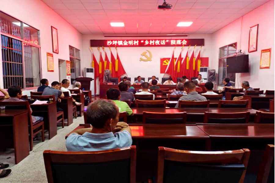 夏夜微风吹拂,伴着清脆的蝉鸣,微微细雨落下,是纳凉避暑的好时光,而沙坪镇金明村村部的院落里却人来人往,热闹非凡。原来,7月22日晚,沙坪镇金明村村委组织了一场别开生面的“乡村夜话”院落会活动,来自金明村的23户乡亲齐聚在村部,与村委一道,聚民心、汇民意、讲政策、话发展。