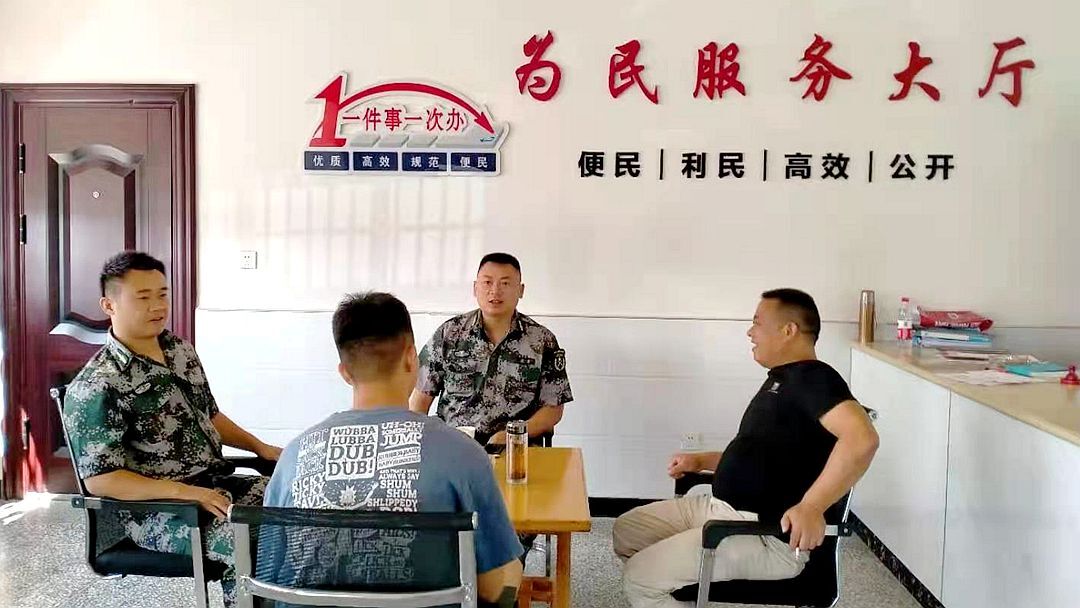 武装部工作人员宣传政策、了解各村征兵情况