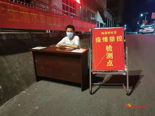 (梅溪桥社区青年志愿者深夜坚守检测点)