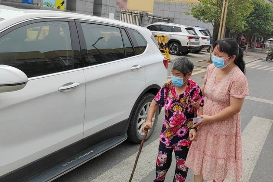 村干部正在接送行动不便群众打疫苗