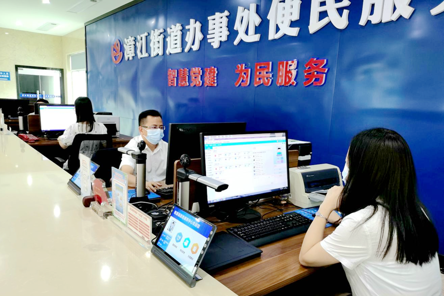 “在目前疫情防控形势相对严峻的情况下,我们与政务专干们主要通过微信、电话联系处理村(社区)推送的业务,比如申请补办‘老年证’,只需要政务专干提供老人的姓名和身份证号,就可以完成证件的补办。同时我们为26个村(社区)划分时段办理业务,并分时段通知政务专干统一代领。”8月2日,漳江街道政务服务中心副主任叶邦兴介绍疫情期间政务大厅的办事模式。