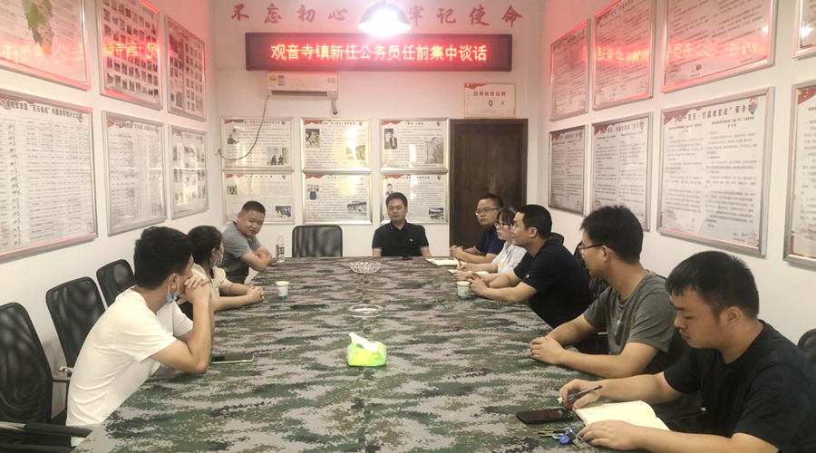8月16日上午,观音寺镇党委书记张耿、镇长向明、党委副书记杨珂、组织委员唐瑶对新录用的4名公务员进行任前集中谈话,为他们上好上岗履职“第一堂课”。