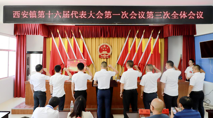 通过投票选举,林炯同志当选为西安镇第十六届人民代表大会主席;杨超同志当选西安镇人民政府镇长;王治中、黄兵当选为西安镇人民政府副镇长。随后,新当选的镇人大主席、镇长、副镇长和代表资格审查委员会成员进行了庄严的宪法宣誓。