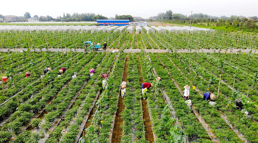 9月初是收获的季节,也是木塘垸镇仁丰村祉东蔬菜基地最繁忙的日子。5、6月收辣椒,7-9月收茄子、丝瓜、香瓜,蔬菜基地不仅产出了许多优质蔬菜,也为附近百姓提供了一批务工岗位。“当日采摘的新鲜蔬菜一般销往就近的城镇,也有部分蔬菜和香瓜由市内销售企业自行来采购,销售到各企事业单位。”基地负责人介绍。据悉,该基地采用合作社生产经营模式,已发展基地200亩,种植了哈密香瓜、茄子、丝瓜、辣椒等十多个品种,有8个产品通过绿色产品认证。