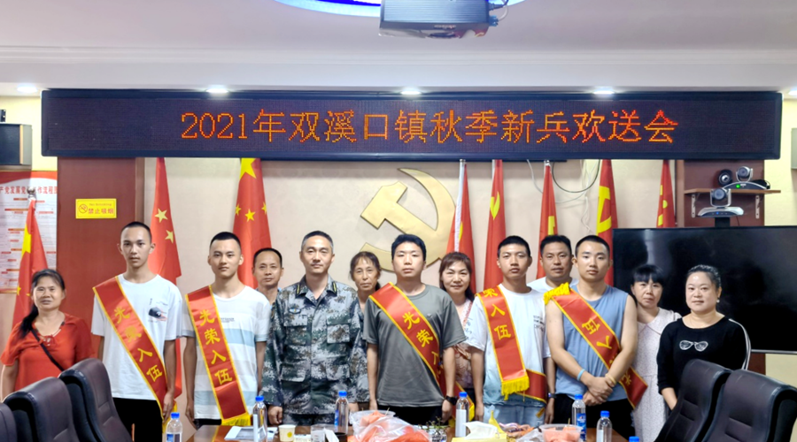 近日,双溪口镇举行2021年度秋季新兵欢送会,欢送即将奔赴火热军营的新兵。欢送仪式上新兵们个个精神抖擞,立志投身军营建功立业,奔赴边疆保家卫国。